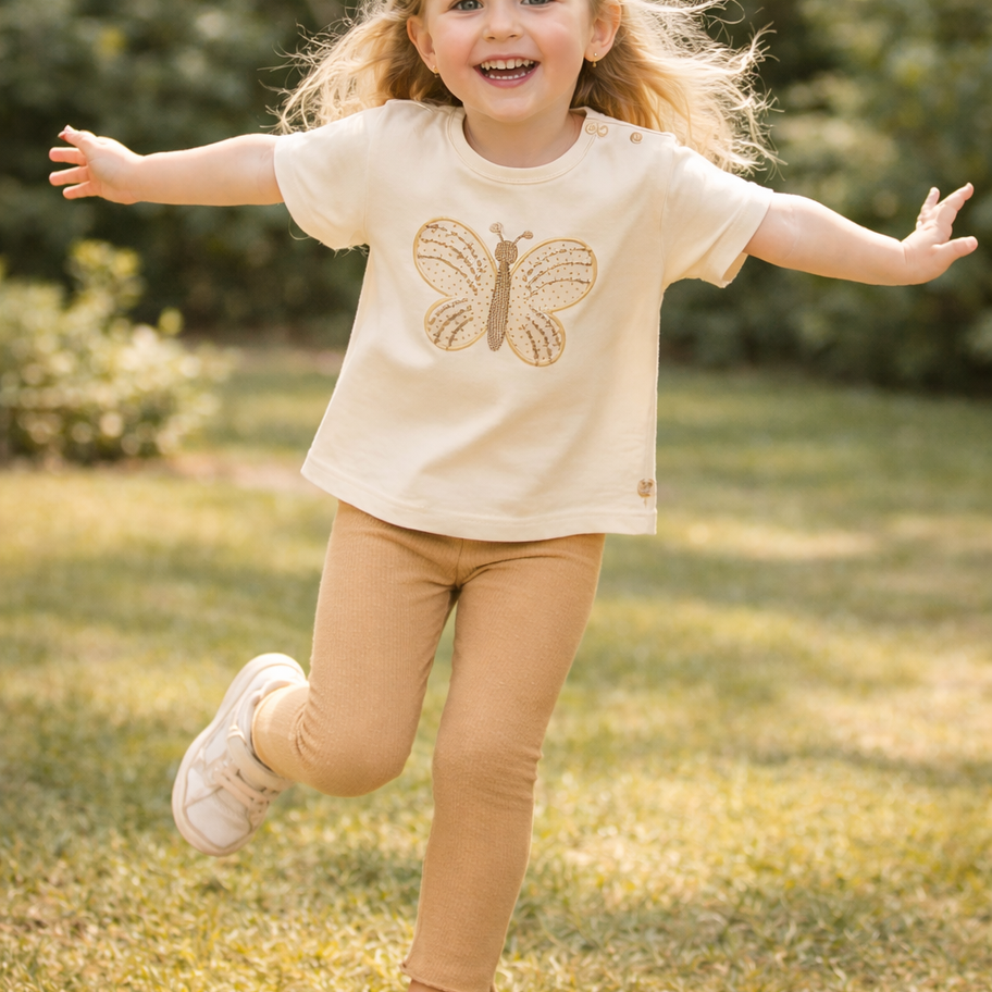 2-Teiler kurzarm T-Shirt Leggings Creme Schmetterling Dirkje