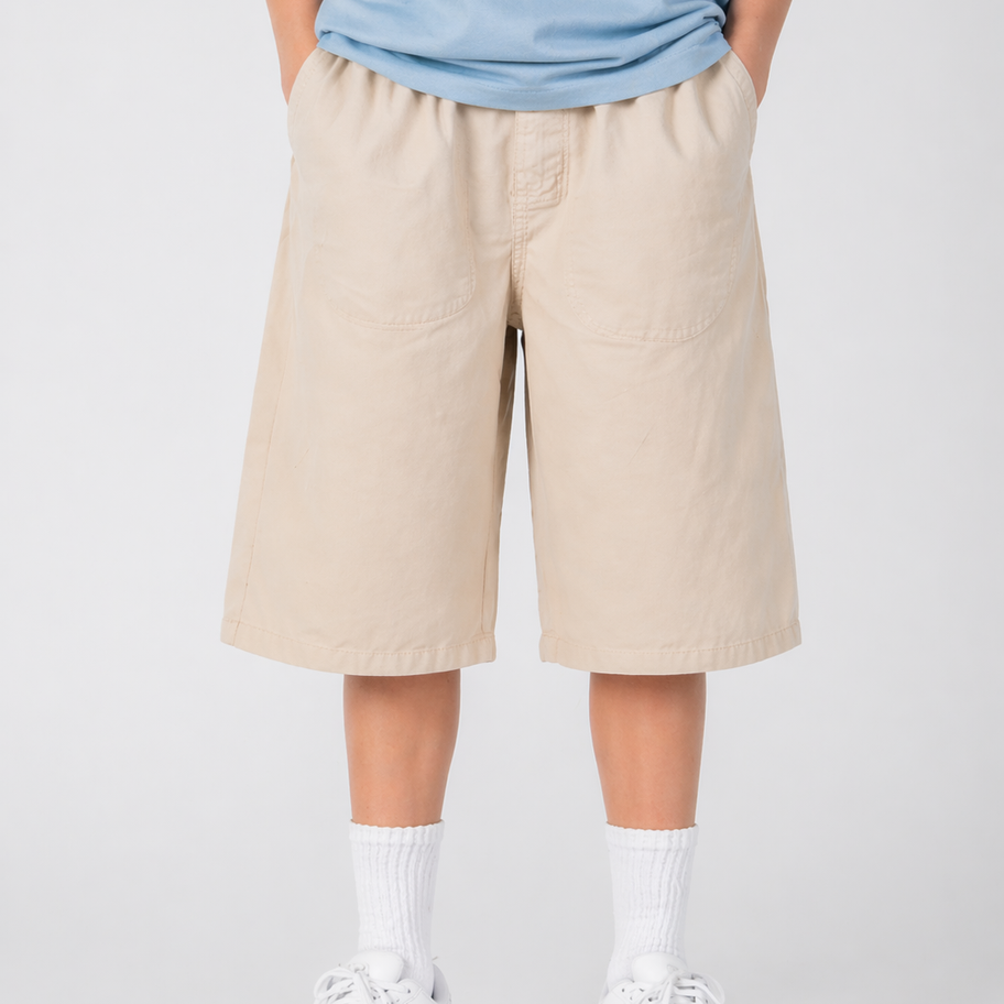 Coole Shorts / Bermuda für Jungs, Skater-Look, Länge knielang, weites Bein, Bund innen verstellbar, Stretch, Farbe beige, Eingriffstasche seitlich, Marke Blue Effect.