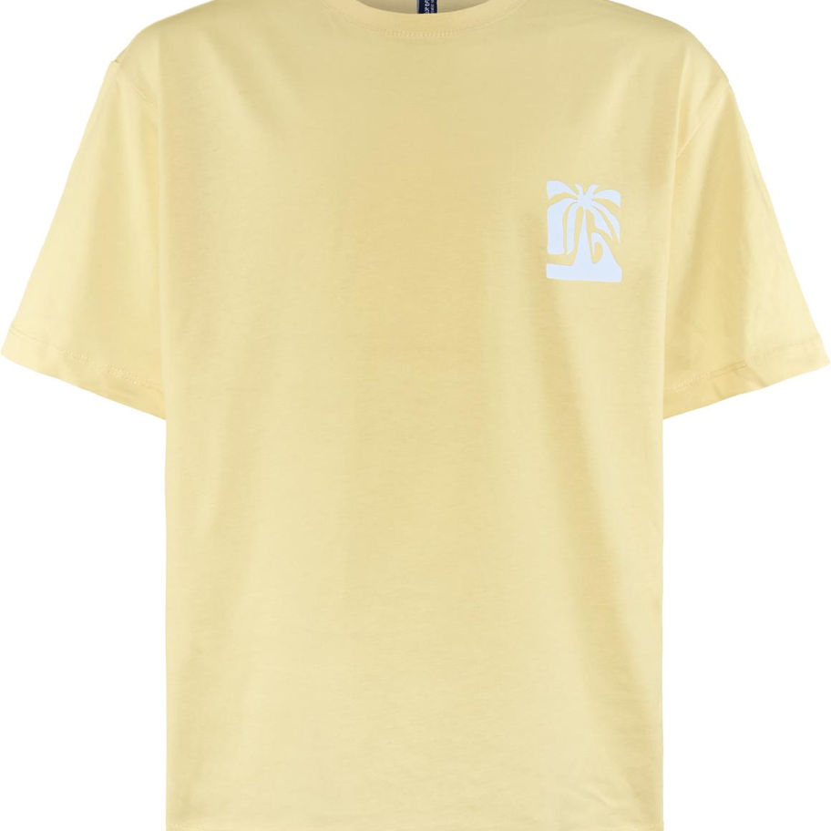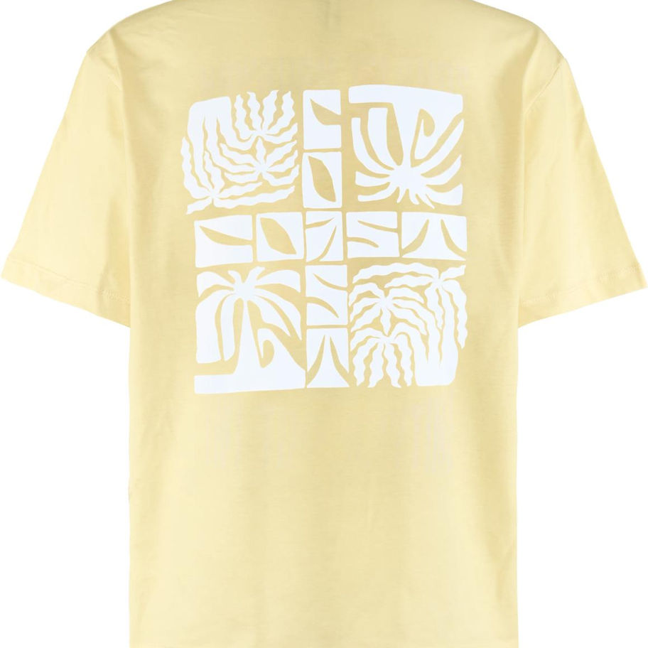 Sommer T-Shirt, Kurzarm, Farbe Gelb, cooler Rückenprint weiß, Schnitt-Oversized, hochwertige Baumwolle, Marke Blue Effect, Artikel kann von Junge und Mädchen getragen werden.